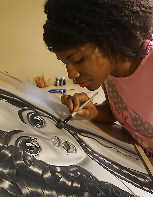 A few years later I was sitting in church near another member. As I peeked over her shoulder I could see that she was working on a drawing. I was intrigued because up until that point I had never seen another person draw. Due to my interest, she took me under her wings, and under her instruction I was able to begin learning the foundations of art. By middle school I was frequenting the library in search of books that held bold and vivid pictures. I would return home with them and spend hours replicating the pictures I saw inside. My passion for becoming an artist was undeniable and grew the more I learned, observed, and created my own works of art.