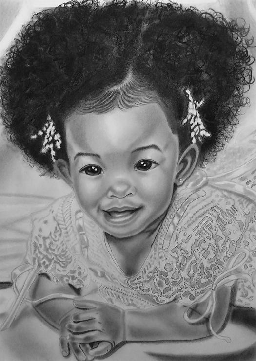 This piece was done for a client who saw my work upon intering the library and instantly hired me to draw her granddaughter on a 14x17 drawing paper. This piece I enjoyed alot because this baby's character allluminated off the picture. How precious!