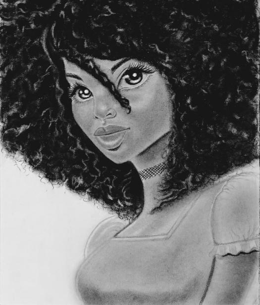 This piece was done on an 18x24. I actually took a self portrait to experiment with to challenge myself. This is another piece amongst others that show the beauty of a woman's hair. My black hair is beautiful.