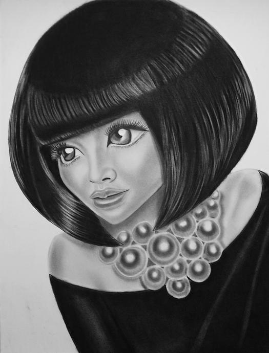 This woman was inspired by the Egyptian women from the Ten Commandment. I wanted to use their hair styles and their eyes to show off their beauty. The pearls were very important in this piece because I wanted them to reflect the softness in her eyes.